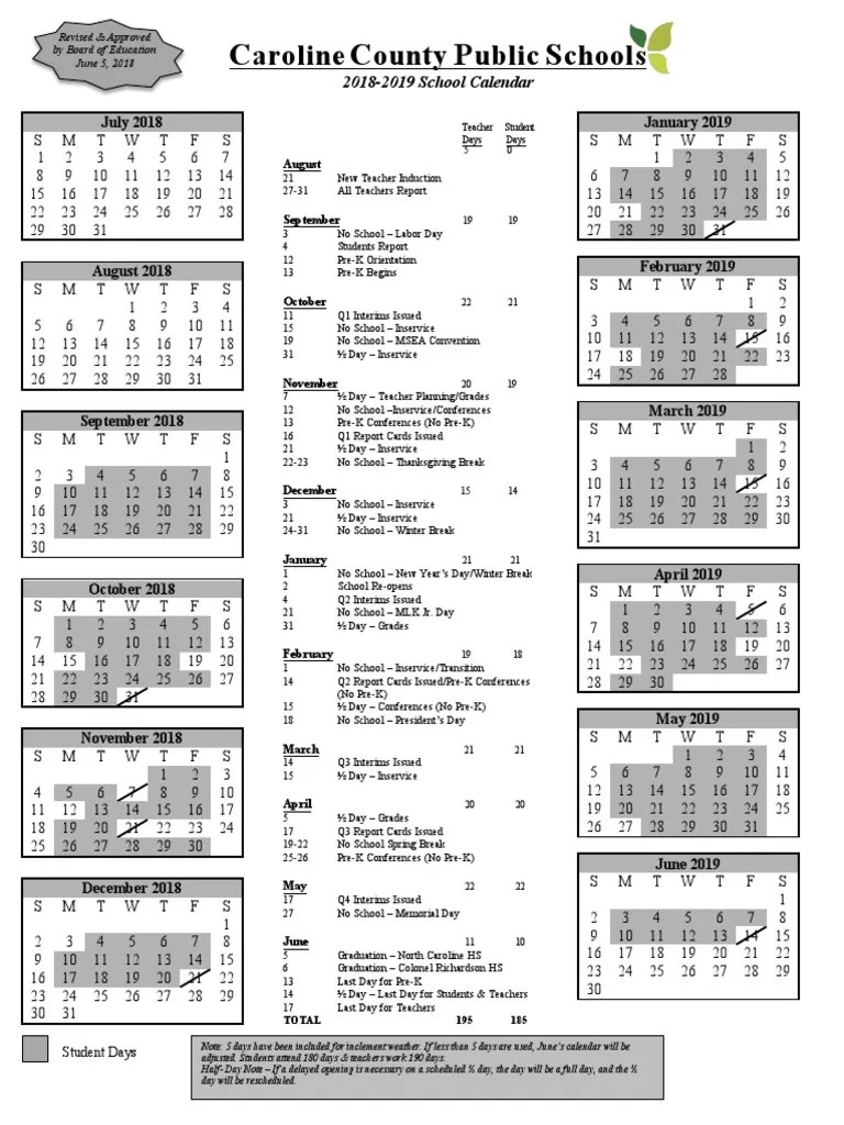 Ccps 1819 School Calendar PDF Schools Behavior Modification