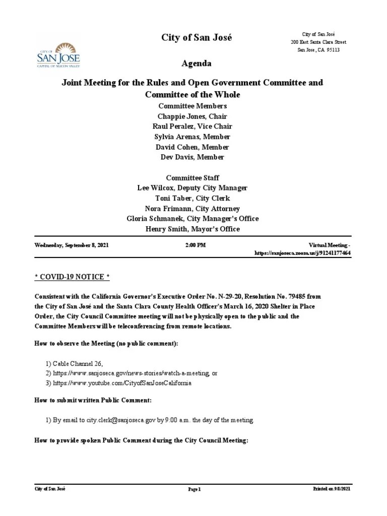 City of San Jose California Agenda PDF San Jose Online And Offline