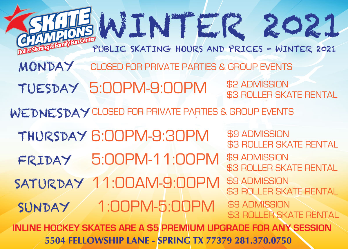 Public Skating Schedule Champions Rollerworld