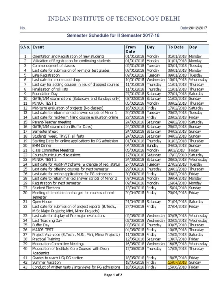 Academic Calender IIT Delhi PDF Academic Term Observances