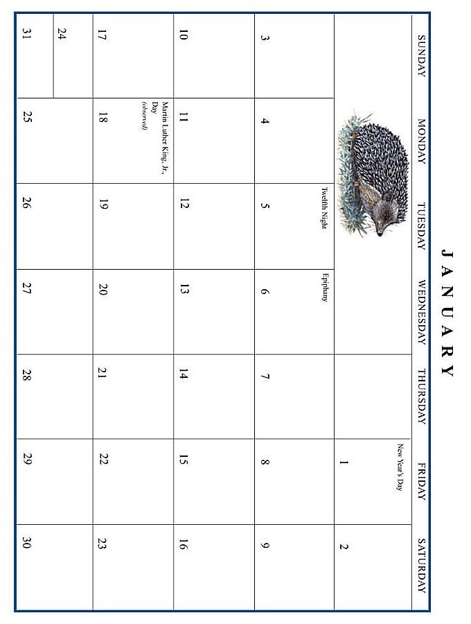 Jan Brett 1999 Calendar January grid