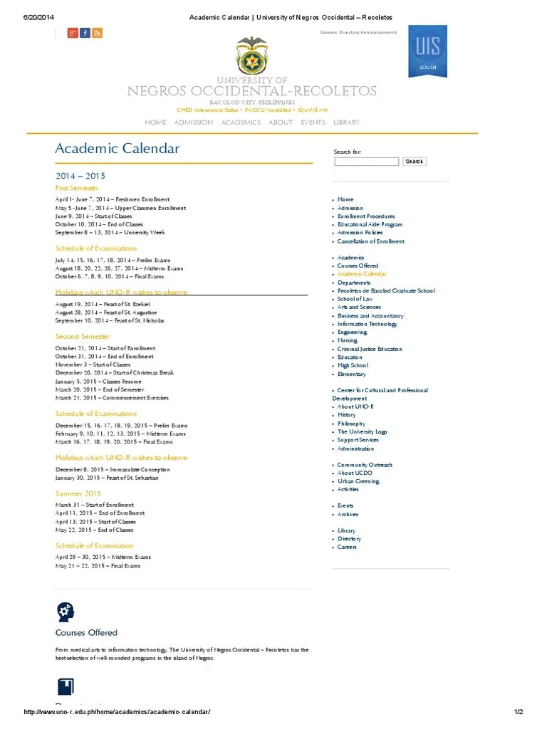 Occidental Academic Calendar Printable Template Calendar