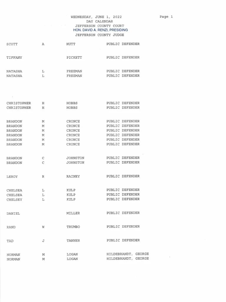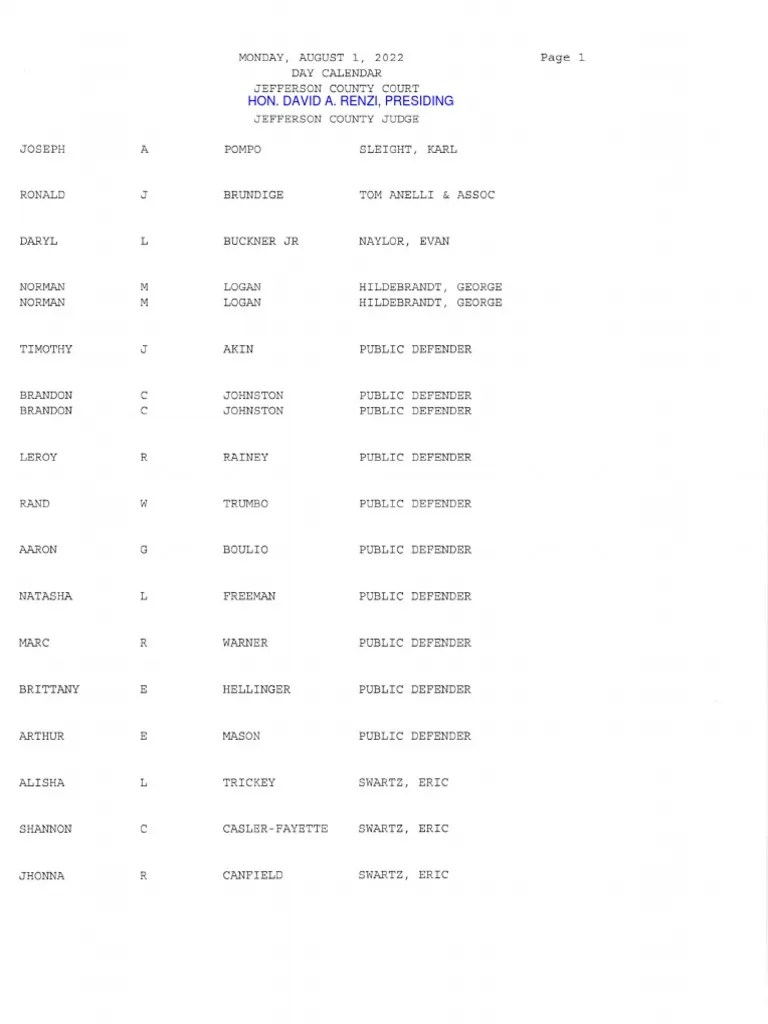 Jefferson County Court Calendar Aug. 1, 2022 PDF